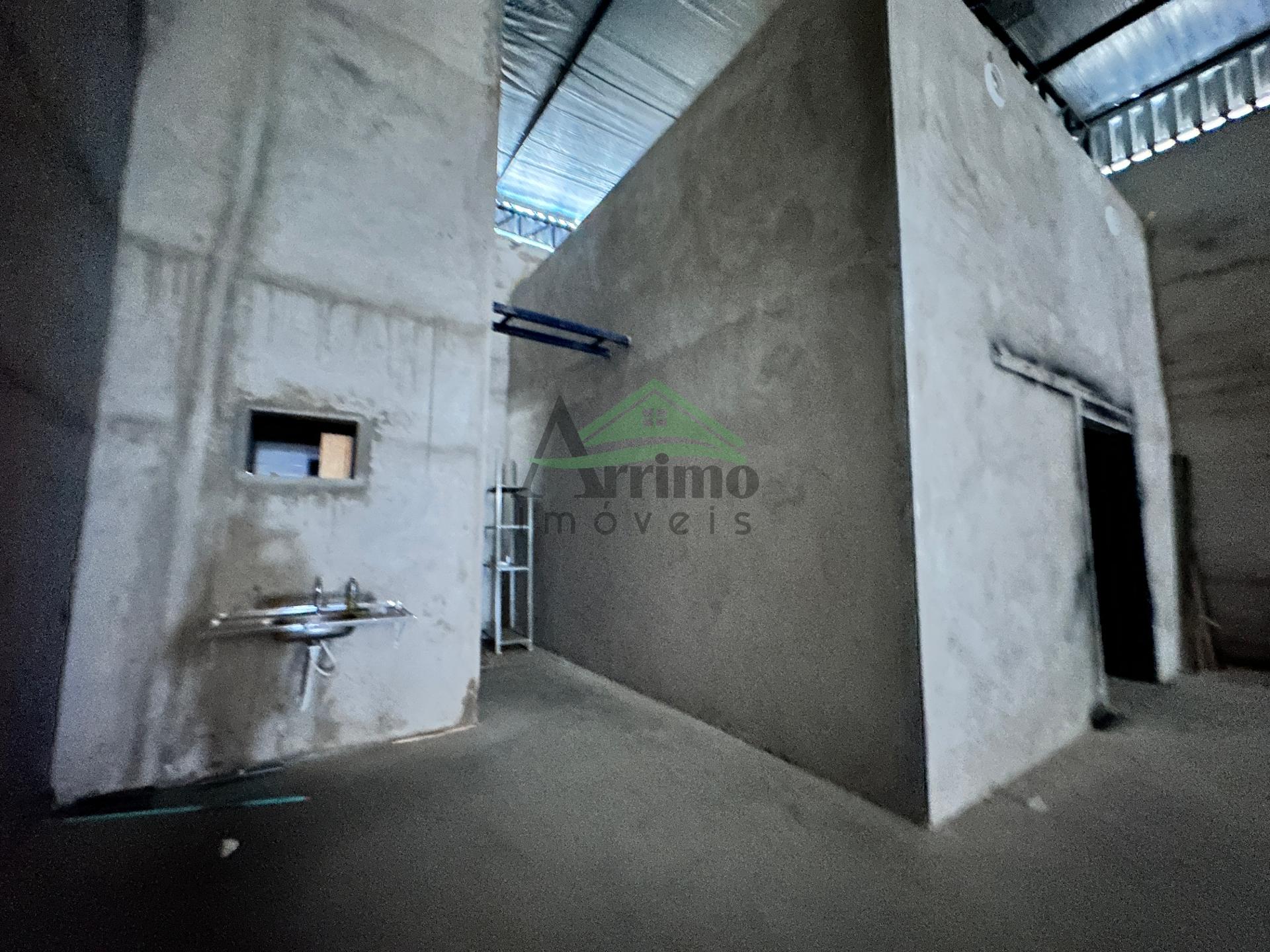 O piso é todo em contra piso, garantindo resistência e facilidade na manutenção, e há uma pia instalada para apoio às atividades do dia a dia.