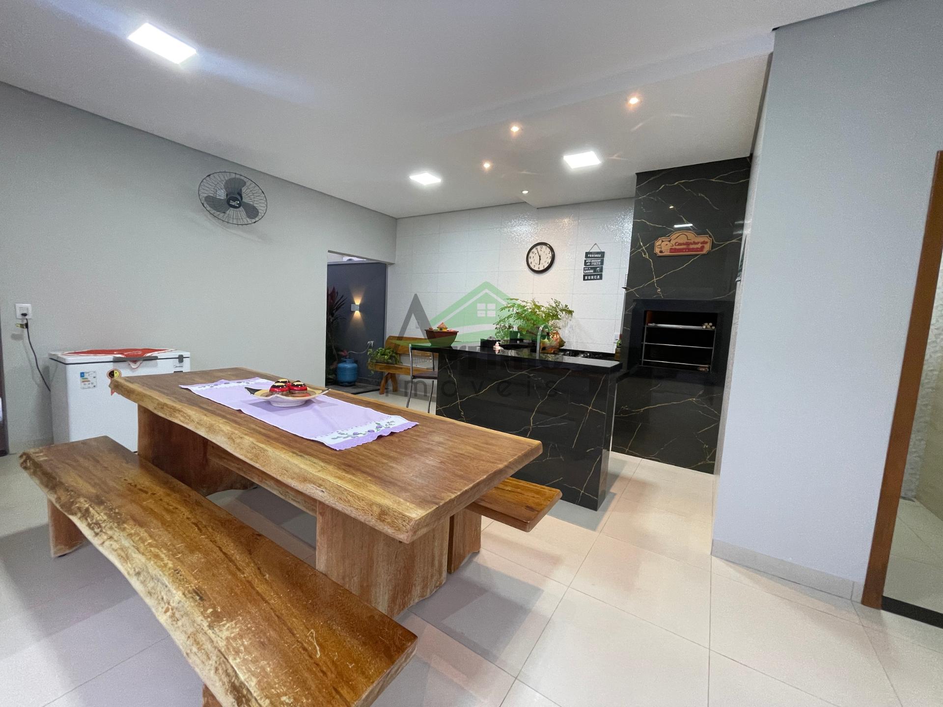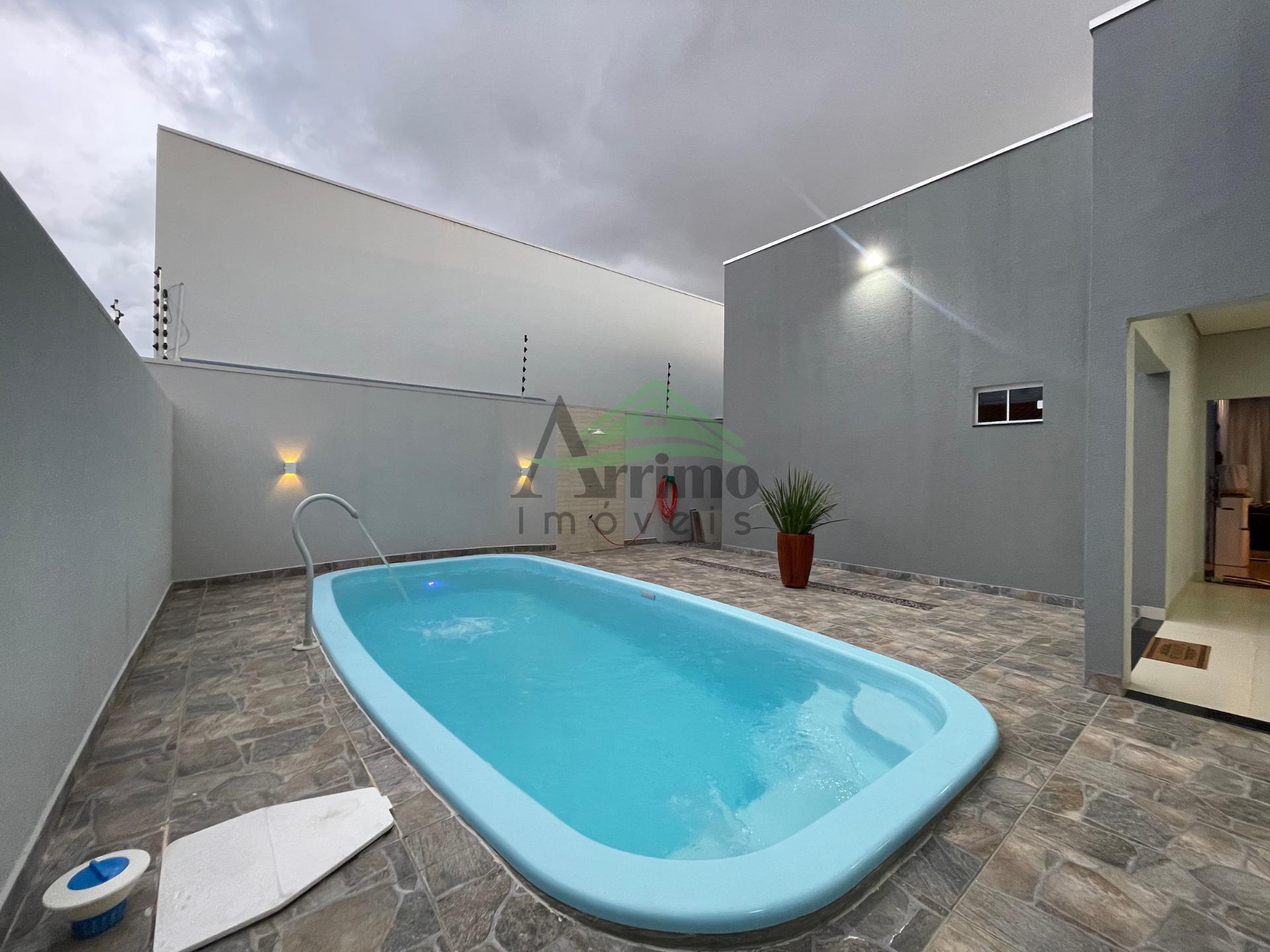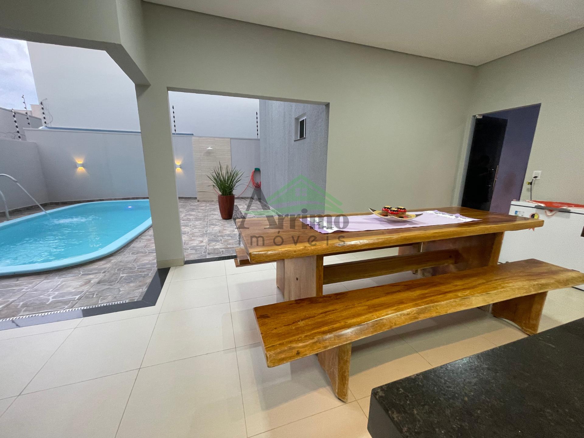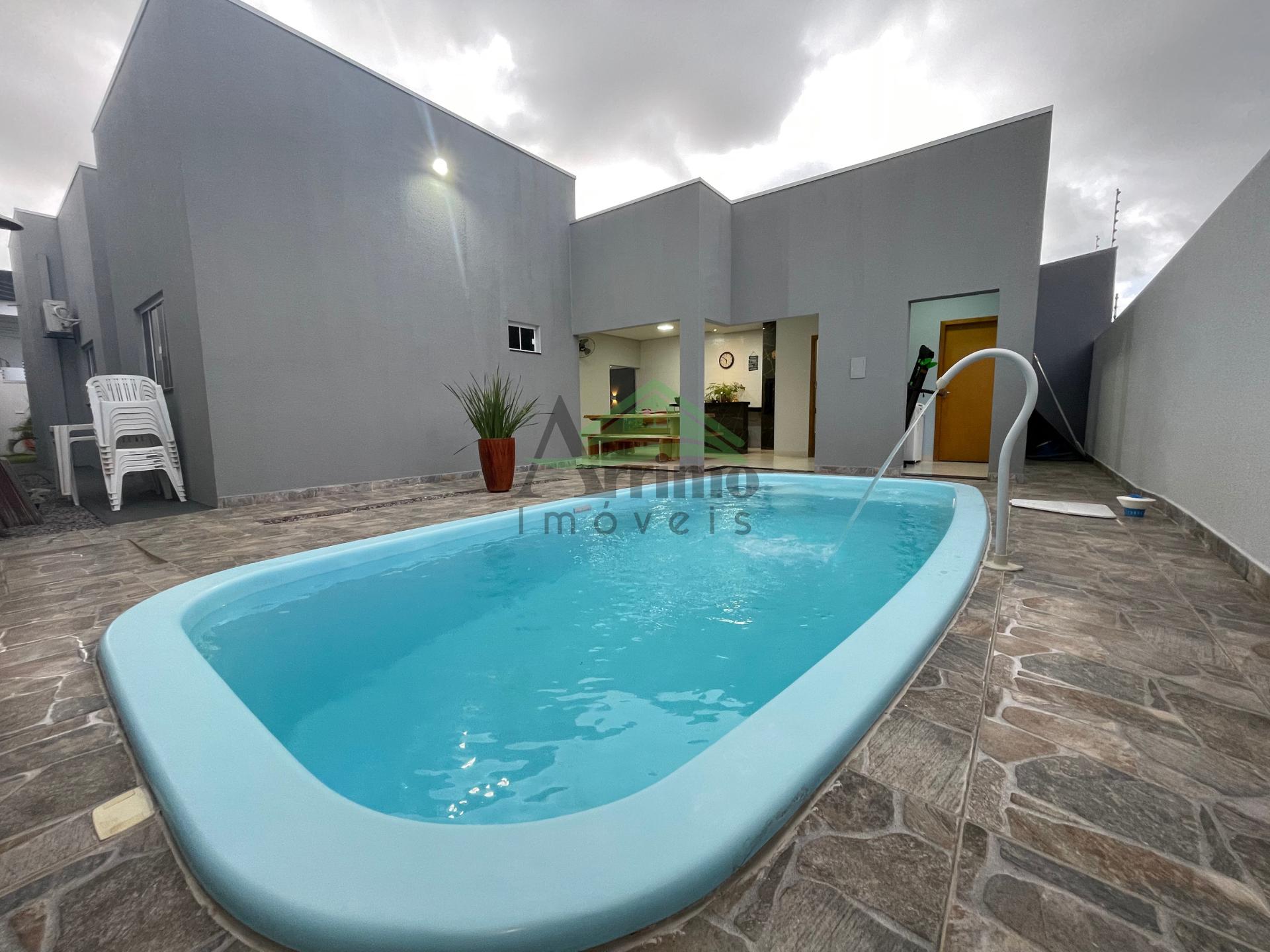 O imóvel conta com sala, cozinha planejada, 02 suítes sendo uma máster com closet, 01 quarto social, 02 banheiros sociais, área gourmet, lavanderia, despensa, garagem coberta para 02 carros e piscina com cascata.