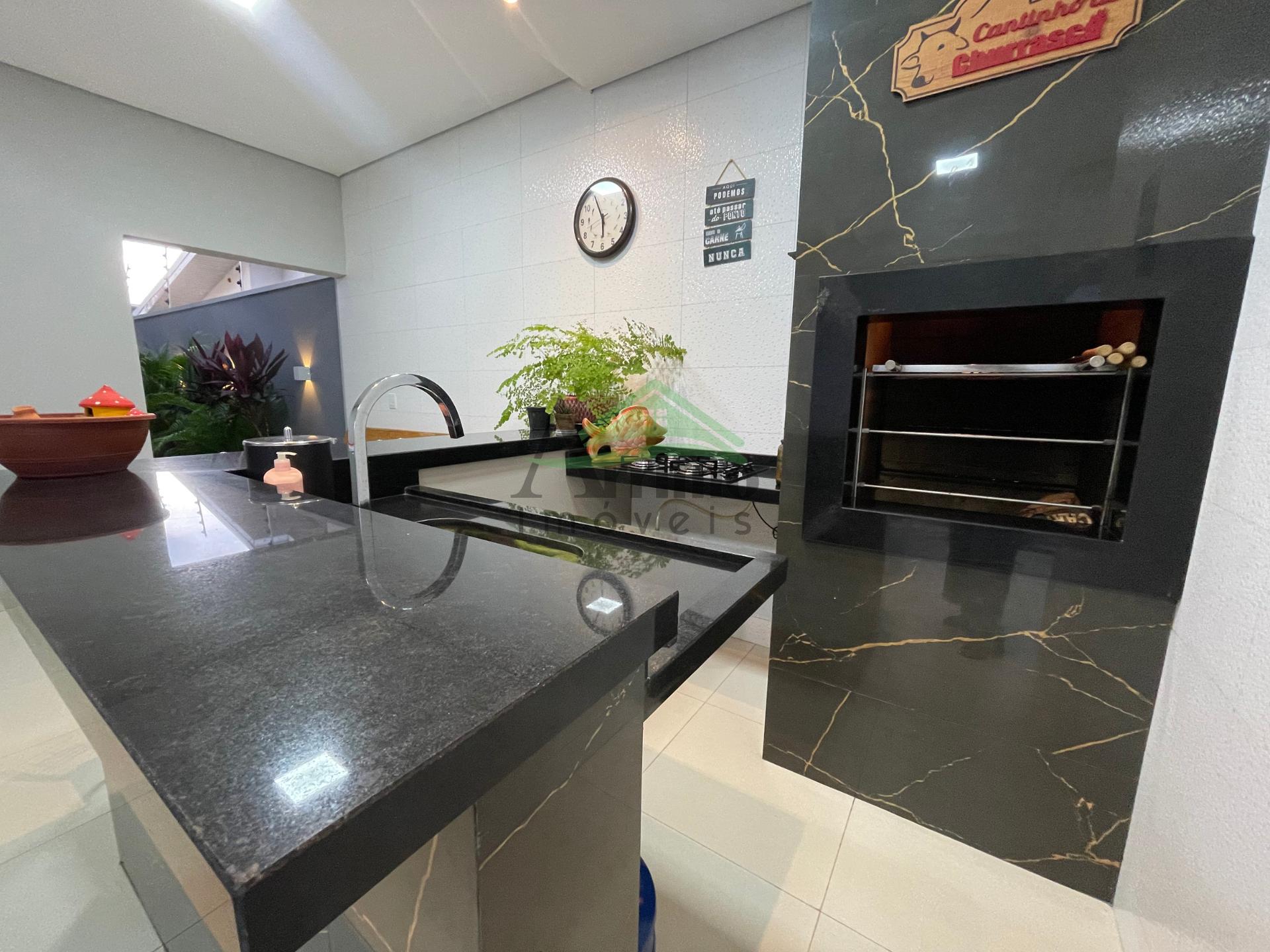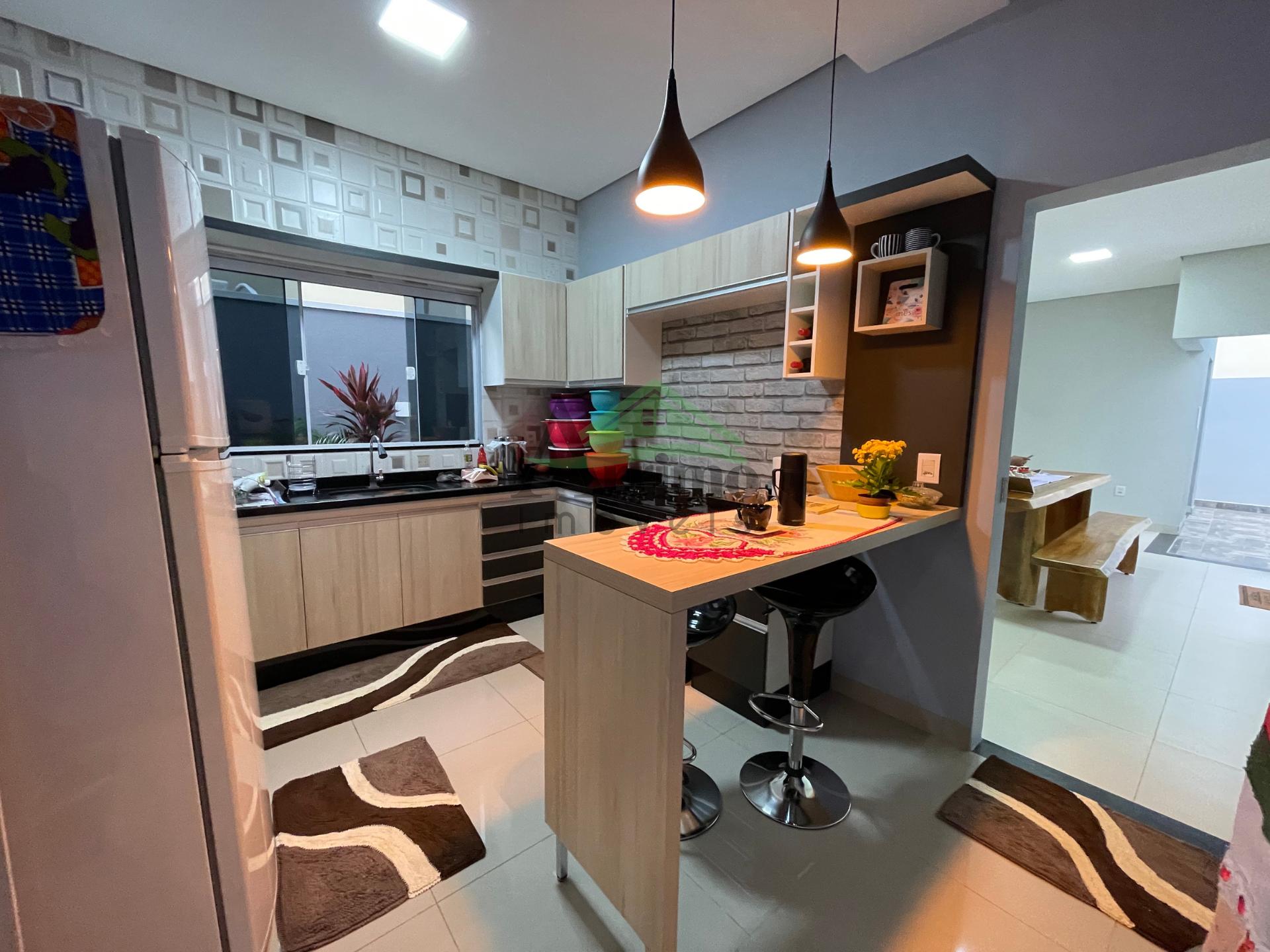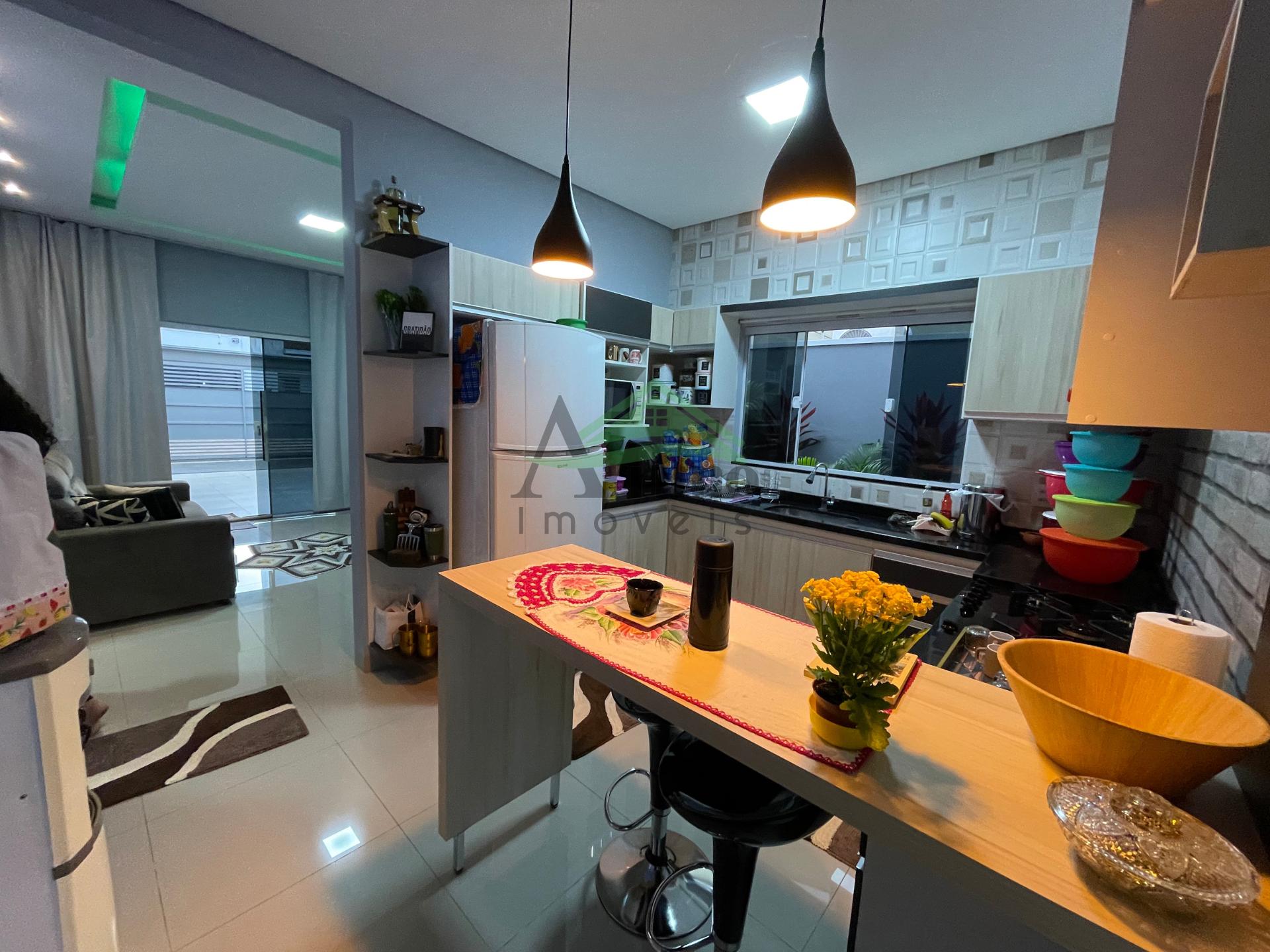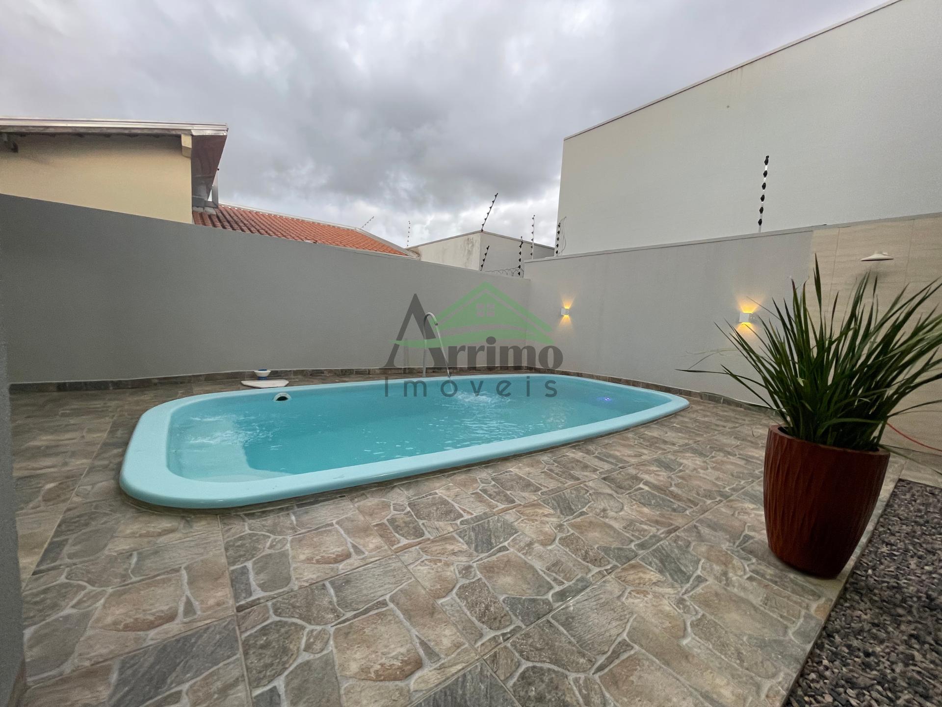 O imóvel conta com sala, cozinha planejada, 02 suítes sendo uma máster com closet, 01 quarto social, 02 banheiros sociais, área gourmet, lavanderia, despensa, garagem coberta para 02 carros e piscina com cascata.