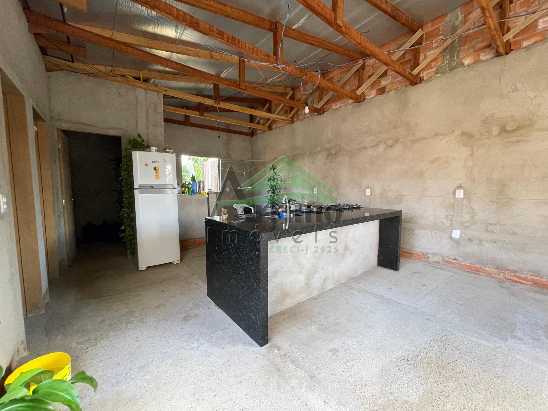 A parte dos fundos faltam apenas os acabamentos. É muito versátil, projetada para uma cozinha com área gourmet, banheiro, despensa e lavanderia.