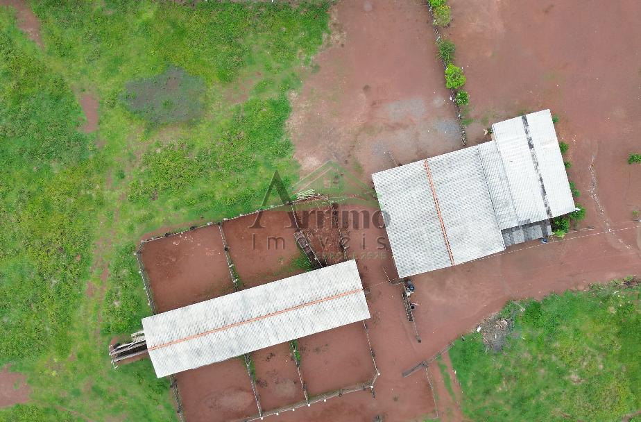 Barracão coberto de 12x12 metros, contendo oficina, baia, depósito fechado, quarto e banheiro para funcionário, além de garagem para 2 tratores.
